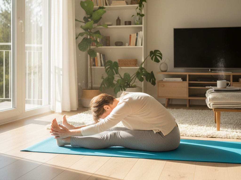 Before stretching, always warm up your body. Five minutes of light walking, marching in place, or gentle arm swings increases blood flow to muscles and prepares joints for movement.